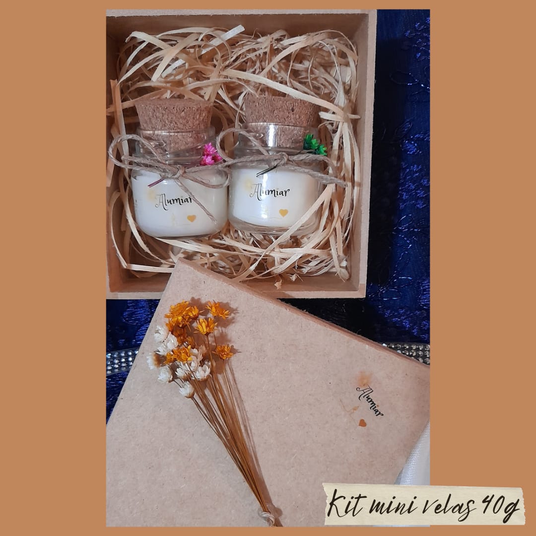 Um presente que encanta pelos sentidos e pela beleza artesanal. O Kit Mini Velas Aromáticas é uma celebração do cuidado e da delicadeza, reunindo elementos naturais e elegantes em uma apresentação charmosa e atemporal. Ideal para quem busca oferecer momentos de aconchego, presença e afeto — seja para lembranças especiais, eventos personalizados ou para transformar o cotidiano em um ritual de bem-estar.