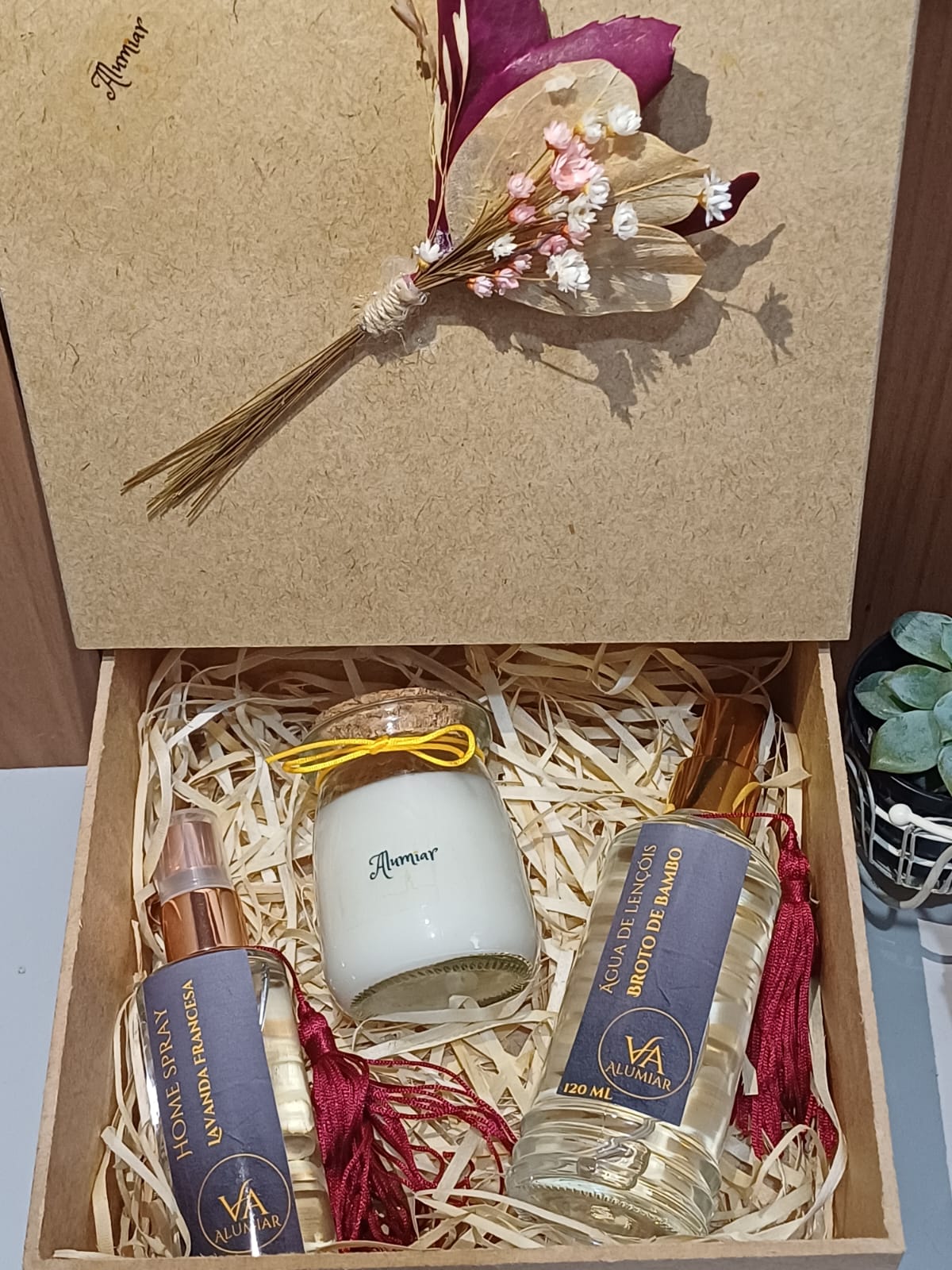Um convite ao bem-estar sensorial, este kit foi cuidadosamente criado para transformar o ambiente e a rotina com sofisticação, perfume e aconchego. A combinação perfeita entre fragrância, estilo e cuidado em cada detalhe.